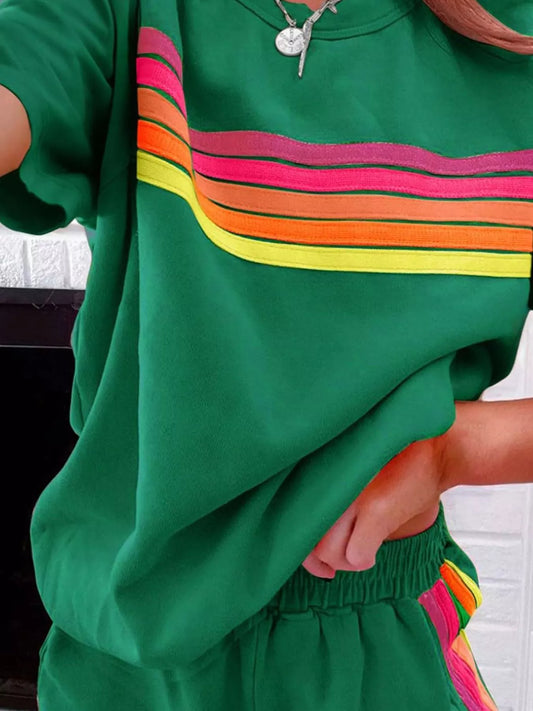 Rainbow Striped Round Neck Top and Shorts Set – Women’s Comfortable Casual Loungewear | Nova Bodysuits
