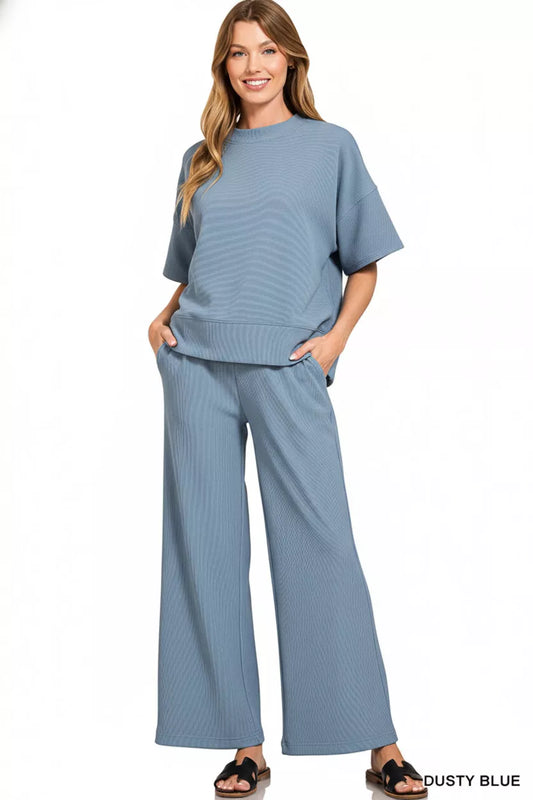 Zenana Ribbed Round Neck Tee & Pants Set – Women’s Comfortable Casual Loungewear | Nova Bodysuits